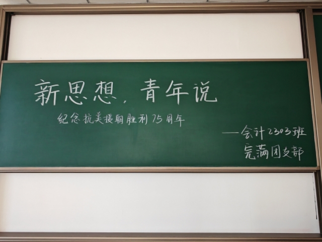 正值抗美援朝胜利75周年,为持续深化青年思想引领,筑牢青年信仰之基,激励广大青年自觉将个人成长融入时代发展洪流,会计2303班于12月25日精心组织并成功举办了“新思想,青年说”主题学习活动。本次活动通过系统性的理论学习、开放性的观点碰撞与深层次的心得交流,引导同学们深入领会新时代来之不易“平安夜不是洋节,是革命先烈为保山河无恙毅然选择跨过鸭绿江抵御外敌的纪念日。”