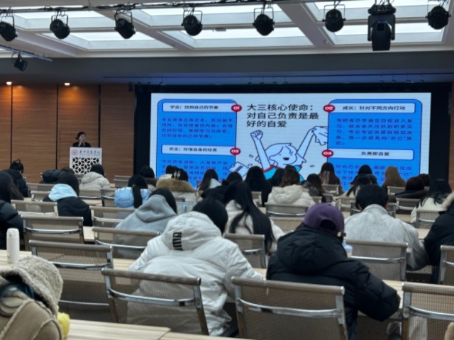 面对大三关键时期,不少同学正面临学业压力、备考焦虑、未来迷茫等情绪困扰,容易陷入自我否定与过度内耗辅导员宿宇结合学生真实状态,真诚分享、耐心疏导,告诉大家:成长不必追求完美,接纳自己、善待自己,才是人生最重要的课题。
