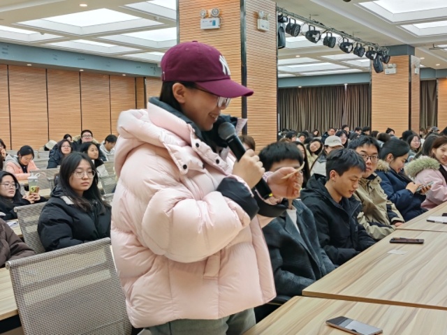 在交流环节,辅导员宿宇将自我关怀与大三核心使命紧密结合,从学业、安全、成长三个方面为同学们提出务实建议。学业上,坚守初心、拒绝躺平,认真对待专业学习,合理规划考研、就业、考公等方向;安全上,守住底线、珍爱自己,远离反诈、网贷、夜不归宿等风险;成长上,停止内耗、专注当下,把每一次努力都化作奔赴未来的底气。