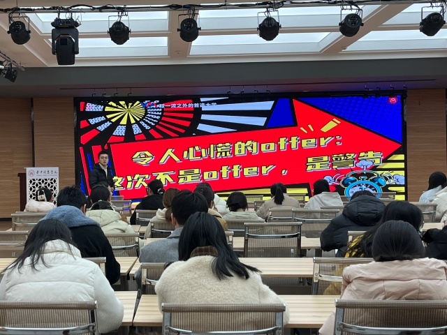 为引导大三下学期学生明晰学业职业规划方向,树立规则与法律意识,规避成长路上的各类风险,淬炼商学院·国际商学院辅导员赵敬宇为学生开展以“令人心慌的offer:这次不是offer,是警告”为主题的辅导员说完满活动。本次活动紧扣大三学生规划核心需求,将法律规则警示与学业职业发展指导相结合,让学生在明确前行方向的同时,筑牢思想与行为的底线。