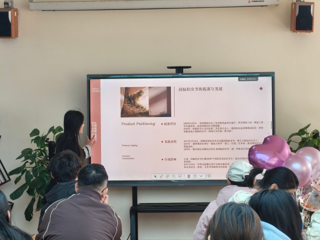 活动刚开始,王同学就带着精心准备的PPT闪亮登场。从中国历史上第一位女将军妇好,到如今活跃在各行各业的杰出女性;从关于女性生理健康的暖心科普,到如何应对学业压力、悦纳自我的心理学小技巧……一页页精心制作的幻灯片,不仅传递着知识,更像是一份份温暖的拥抱。当屏幕上出现“爱自己,是终身浪漫的开始”这句王尔德的箴言时,不少同学轻轻点头,眼神里有光在闪烁。这一刻,大家收获的不仅是干货,更是对“女性”这个身份更深的理解与自豪。