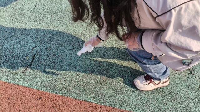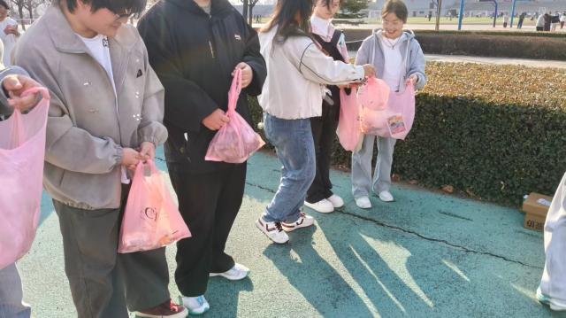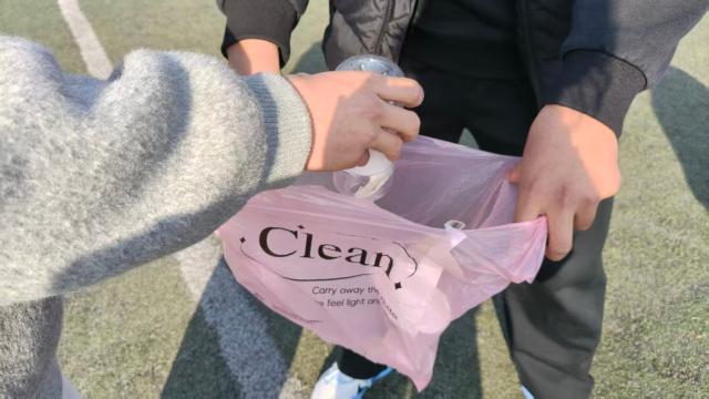 “校园清洁行动”将活动推向高潮。同学们分组奔赴操场各个角落及周边、绿化带、楼道角落等公共区域,佩戴手套、手持垃圾袋,分工协作、细致清理。捡拾垃圾的过程中大家挥洒汗水,用实际行动守护校园的整洁与美丽。清洁结束后,各小组分享劳动感悟,畅谈环保心得。完成两项及以上挑战的同学获得了纪念便利贴,这不仅是一份奖品,更是一份绿色承诺的见证。