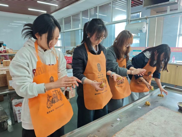 揉面承匠心,酥香藏晋韵。作为晋商文化孕育的“山西糕点之首”,太谷饼以百年非遗技艺承载着三晋大地的饮食文化底蕴。为让同学们近距离触摸非遗美食的温度,读懂传统工艺背后的匠心传承,财务2402班于3月12日14:00走进太谷鑫炳记非遗文化园,开展“财务2402·青春践非遗”之揉面藏晋韵主题活动,在亲手制作太谷饼的过程中感受晋商文化魅力,让青春力量为非遗传承注入新活力。