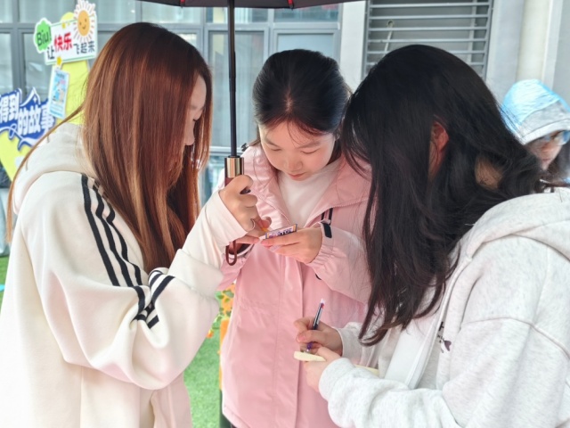 工作人员展示“三无”零食、仿冒品牌护肤品、虚假宣传网课套餐等实物道具,逐一拆解背后的骗局逻辑:“三无”零食如何用花哨包装掩盖过期隐患,仿冒护肤品怎样模仿大牌标识混淆视听,虚假网课如何用不实承诺诱导消费……同学们近距离观察、细致对比,直观感受消费陷阱的隐蔽性,不少同学表示:“原来日常消费里藏着这么多学问,以后一定会多留个心眼,守护好自己的‘钱袋子’。”