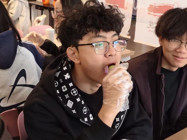 活动尾声,同学们制作完成,围坐分享,品尝着亲手制作的美食,软糯的口感在舌尖化开,艾草的清香与馅料的醇厚相得益彰。“这是我第一次做青团,深刻地感受到了传统美食的魅力,想起了春日里和家人一起春游时的温馨。”张嘉童同学说道。大家纷纷分享自己的童年记忆、家乡习俗,欢声笑语间结束了此次活动。