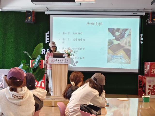 活动伊始,团支书以一段温情短片拉开序幕,向同学们展示了青团悠久的历史以及制作方法,从青团“捣青草为汁,和粉作团,色如碧玉”的古法记载,讲到其从唐代寒食节祭祀供品到现代春日限定美食的千年演变,再到不同地域青团的花式口味与文化寓意,让同学们在了解历史脉络中,读懂这颗小小青团承载的文化重量。