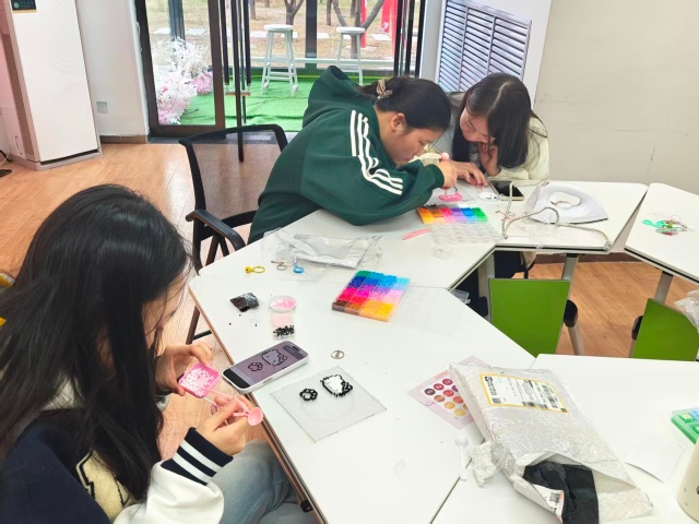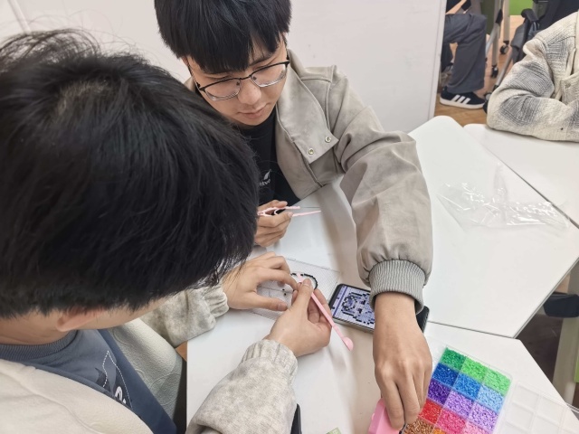 春风轻唤,春意渐醒,供应链2501班却提前进入了“炽烈模式”,只不过,这里滚烫的不是气温,而是五十多双捏着镊子的手,正上演着“针尖上的色彩跳跃”。3月17日,这场名为“小小拼豆藏大大快乐,校园手作时光超治愈”的主题手作活动,让这群整天和“经济”打交道的大一学生,把供应链思维搬进了手工桌,也把紧绷的学习神经,泡在了暖融融的像素世界里。