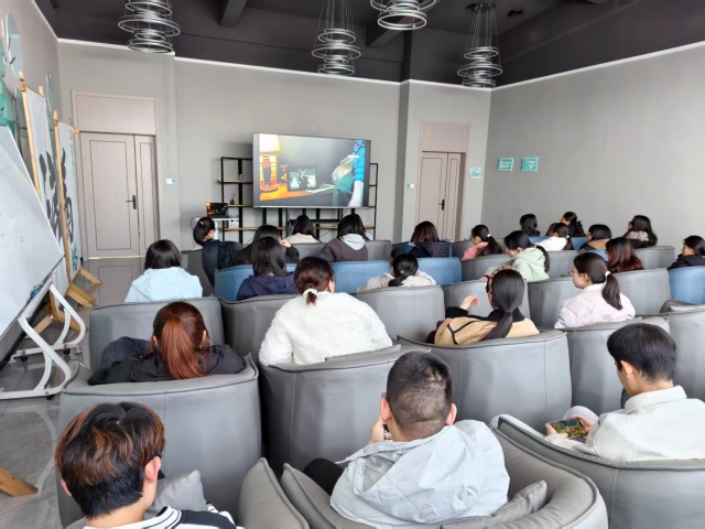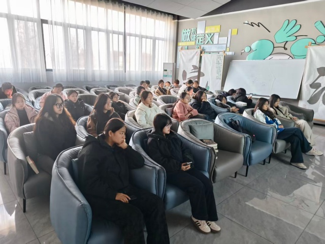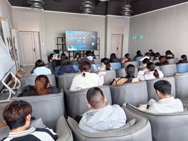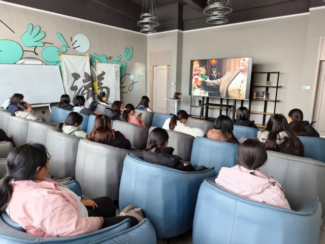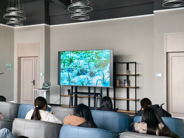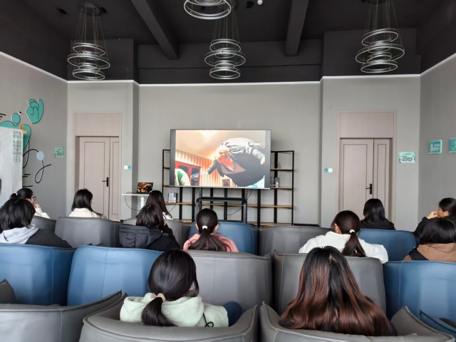 19时整,活动正式拉开帷幕。王瑞雪首先向大家介绍本次活动的背景与意义,她提到:“《志愿军》不仅是一部战争史诗,更是一曲奉献赞歌,影片中无数先辈为了家国安宁挺身而出,这种舍己为人的精神,正是当代志愿服务精神的生动写照。希望大家能在观影中汲取力量,将这份担当转化为参与公益的实际行动。”简短的开场调动起现场氛围,同学们纷纷端正坐姿,满怀期待地投入到影片观赏中。