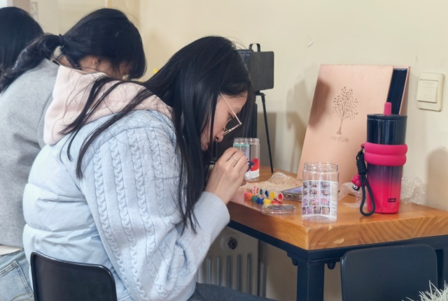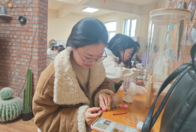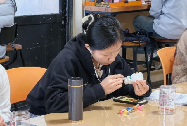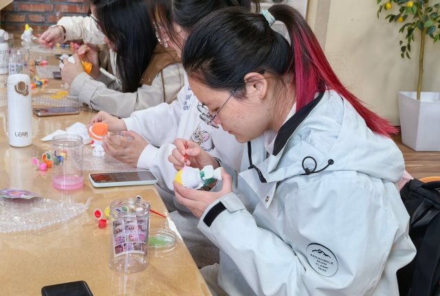 在彩绘的过程中,不少同学表示,沉浸在创作里的时光让他们暂时忘记了学业的压力,看着原本毫无生气的石膏在自己手中变得鲜活起来,内心充满了成就感。来自会计2403班的牛雨琛说:“平时上课和作业都比较忙,这次活动让我静下心来做一件自己喜欢的事,还能和同学们一起聊天,感觉特别放松。”而原本不太熟悉的同学,也在互帮互助中拉近了距离,彼此的友谊在色彩的交融中慢慢升温。