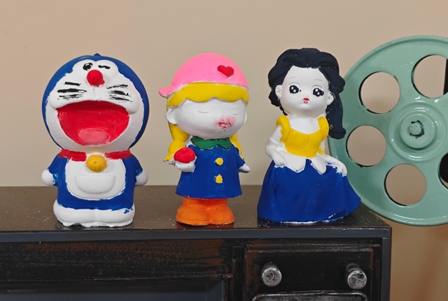 随着时间推移,一个个造型各异、色彩斑斓的石膏娃娃逐渐成型:有的被画上了可爱的腮红,有的被设计成了复古风格,还有的被赋予了独特的故事感。同学们看着自己亲手完成的作品,脸上都洋溢着满足的笑容。大家纷纷拿起自己的作品合影留念,记录下这份充满创意与温情的时刻。