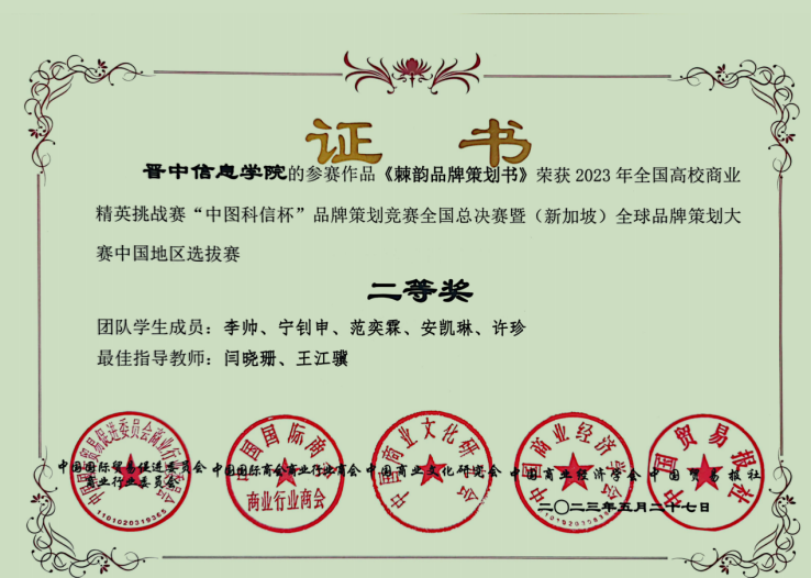 本专业学生可参加丰富的学科竞赛,包括全国高校商业精英挑战赛、全国大学生市场调查与分析大赛、全国高校商业精英挑战赛商务谈判竞赛、社科奖全国高校市场营销大赛策划案等。专业招生至今获奖累计获得各类奖项60余项,其中国家级奖项50余项。