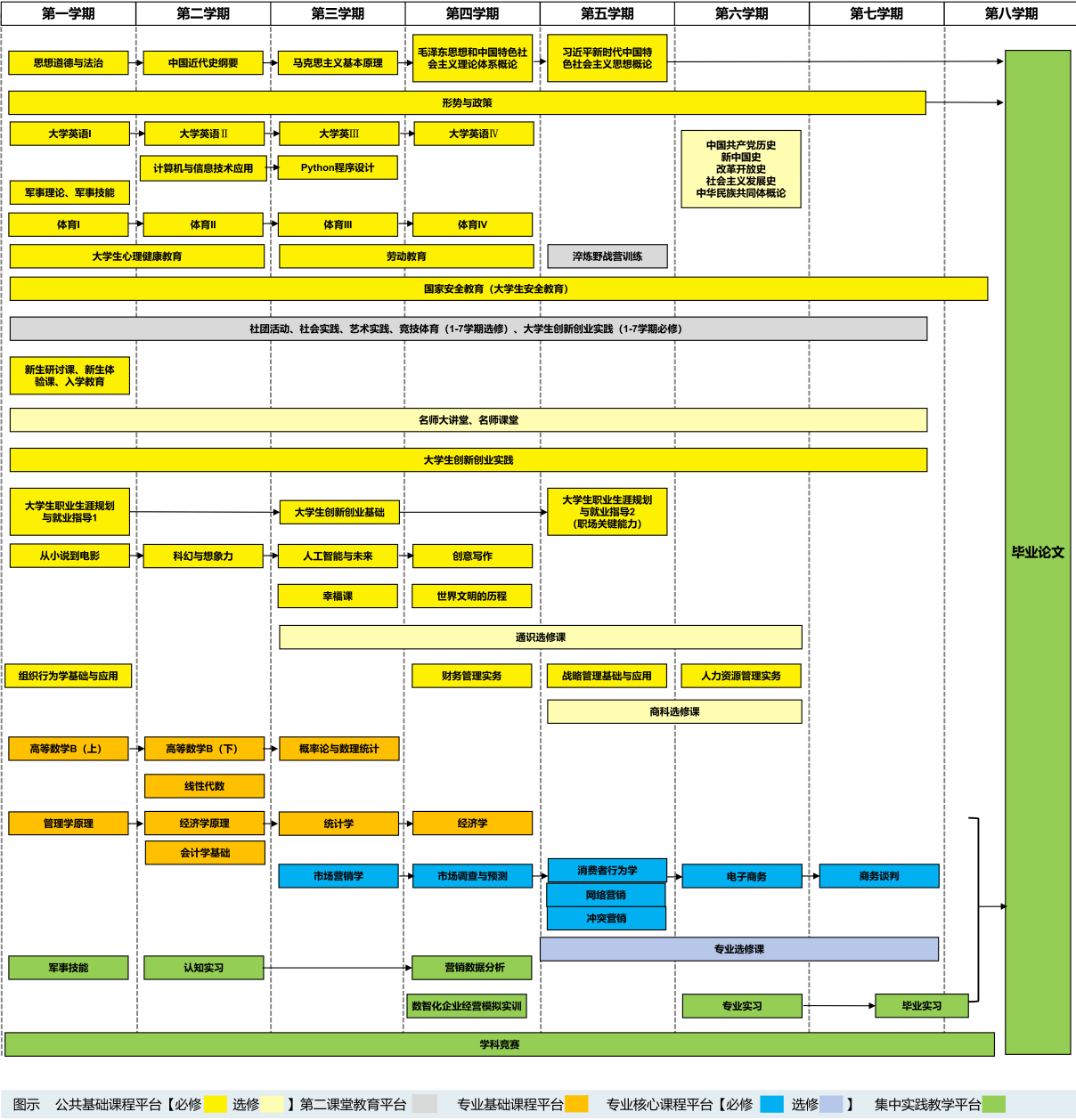 商务谈判、专业选修课、毕业实习、毕业论文等